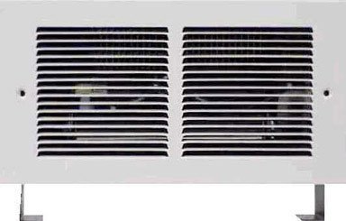 240V, White, Register Plus Fan Forced Heater, 700/900/1600 Multi Watt Factory Preset, Large Squirrel Cage Blower Quietly Provides Increased Airflow Allowing For Lower Surface and Air At Surface Temperatures, 14" W x 9.5" H x 5.75" D, Chosen For Similar Appearance To Central System Register Vents, Primary and Secondary Thermal Safeguard, Commercial Grade High Temperature Manual Reset.